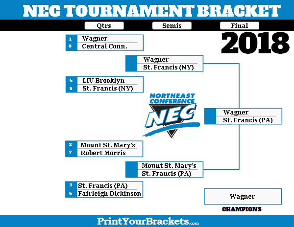 It is not without some hesitation that I'm going with Wagner to win the NEC this year. While it's true Wagner is undefeated at home, and as long as they win they will continue playing in their home gym, the road to the title will not come easy. There first round matchup is even one to watch as Central Connecticut enters playing very good ball. Both St. Francis (NY) and LIU Brooklyn also pose some threats in the semifinal round. The bottom half of the bracket is a little more clear cut. I like St. Francis (PA) to get to the championship match against Wagner, and I actually thing that will be the easiest game for Wagner to get the 'W.'