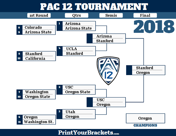 Now here is where the wild west really resides. This tournament has a history of some crazy results and I think this year will be no different. Arizona is the top seed, but they're dealing with a mess from their head coach. It hasn't derailed the Wildcats yet, but it gives enough reason not to trust them too much. 2 seed USC has shown flaws throughout the season too - don't trust 'em. 3 seed Utah has quietly put together a good run, but I don't think they have the overall talent to get the job done. 4 seed UCLA bugs me - and yes - it's got something to do with Lonzo Ball and that whole circus. Watch the Bruins win this whole thing because I basically picked agains them out of spite. Instead we'll focus on the dark horses and I see two capable of making this tournament interesting. Give me Stanford and Oregon to do the damage and disurpt the whole thing by making the tournament championship match with the Ducks claiming the top prize.