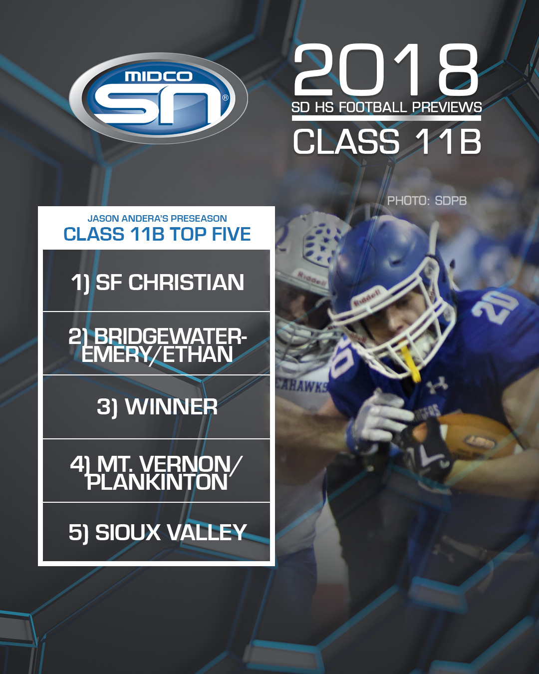 The Winner offense features several options as usual, Phillip Jorgenson, Trevor Peters, Brady Fitz and Brandon Volmer are just a few of the featured backs who will carry this offense. But we all know that Winner builds championship trophy cases on the strength of their defense. Shea Connot, Oscar Pravacek and Sam Kruger are all back to lead one of the top defenses in the class.