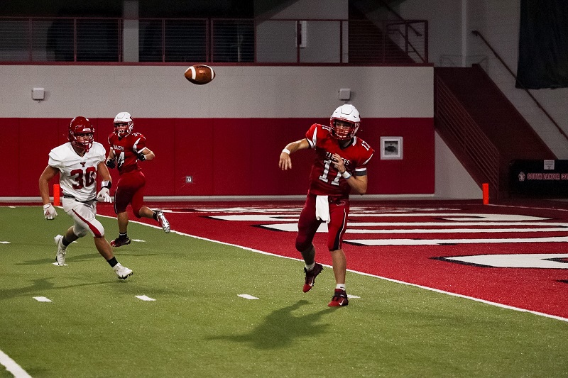 (PHOTO BY MADISEN MARTINEZ: Charlie Ward leads a pass-first attack in Vermillion and leads the class in passing yards.)