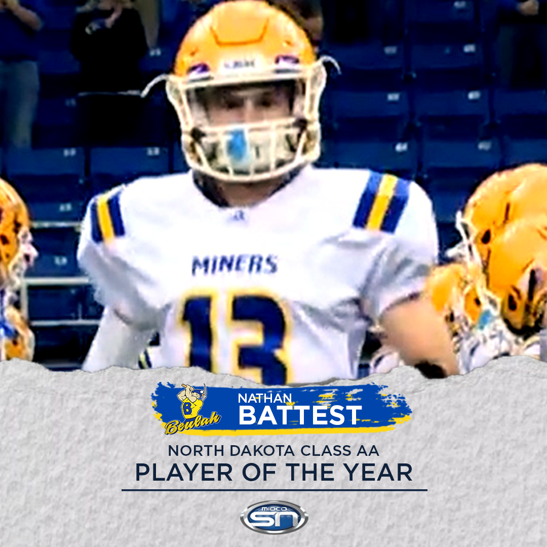 Beulah senior RB/DB Nathan Battest earns the honor after a terrific season on both sides of the ball and leading the Miners to state runner-up honors! Congrats to the MidcoSN ND Class AA Player of the Year.