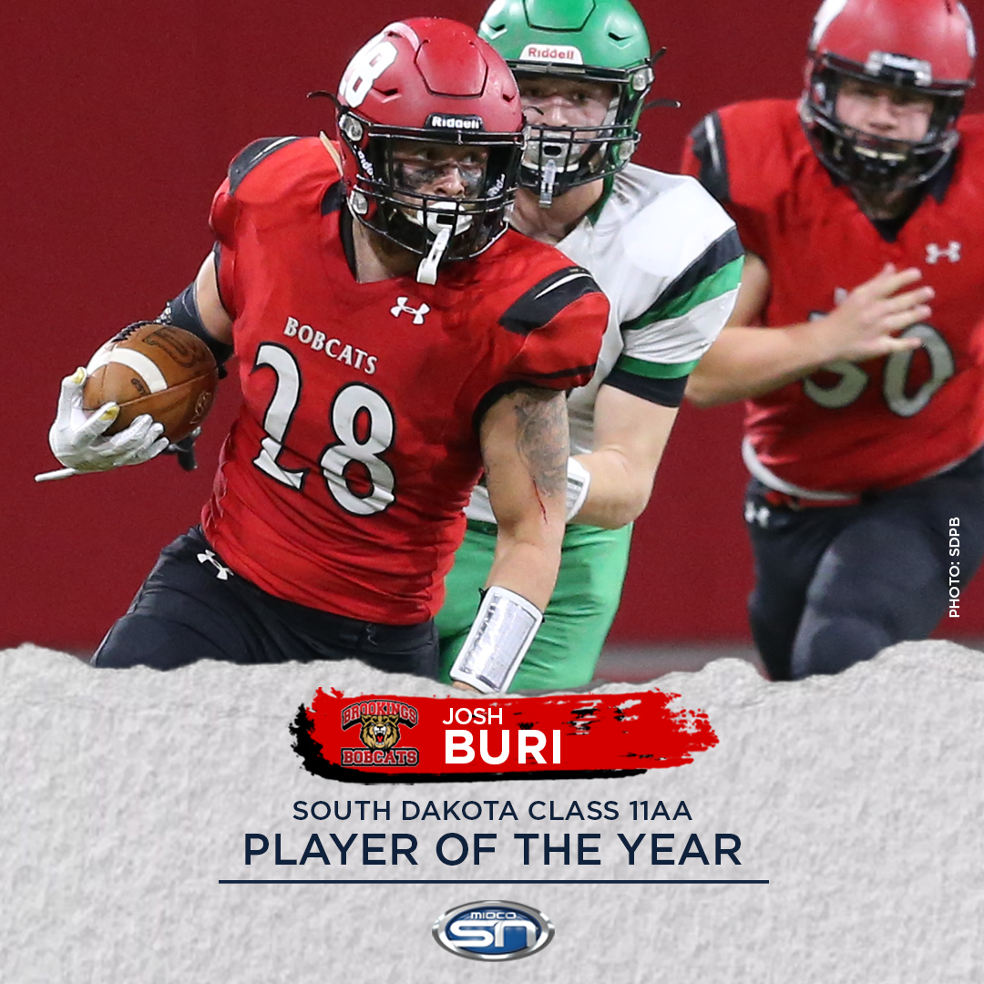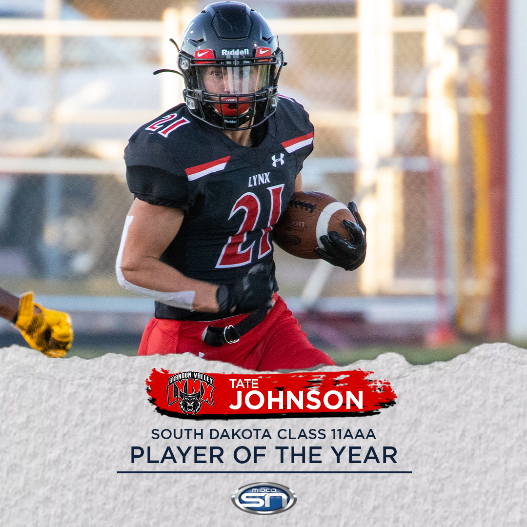Congrats to Tate Johnson, a 2-time state champ, the all-time leader in rushing touchdowns at Brandon Valley – and now the 2-time winner of the MidcoSN 11AAA Player of the Year.