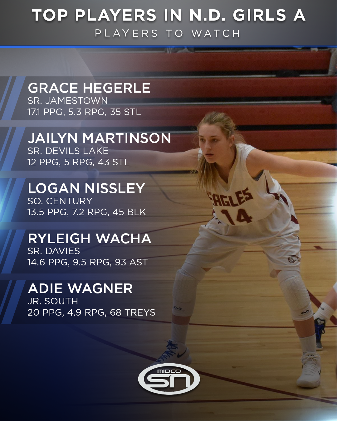 - Adie Wagner, Jr. Fargo South: 20 PPG, 4.9 RPG, 68 Treys