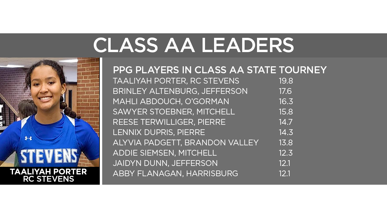 After losing to Brandon Valley on February 16 the Spartans have turned it up. They'vs increased their scoring in the last four games and have shown they can play with anyone in the state. They're led by juniors Jozie Dana and Mya Kochuten who both average double-digit points. |
